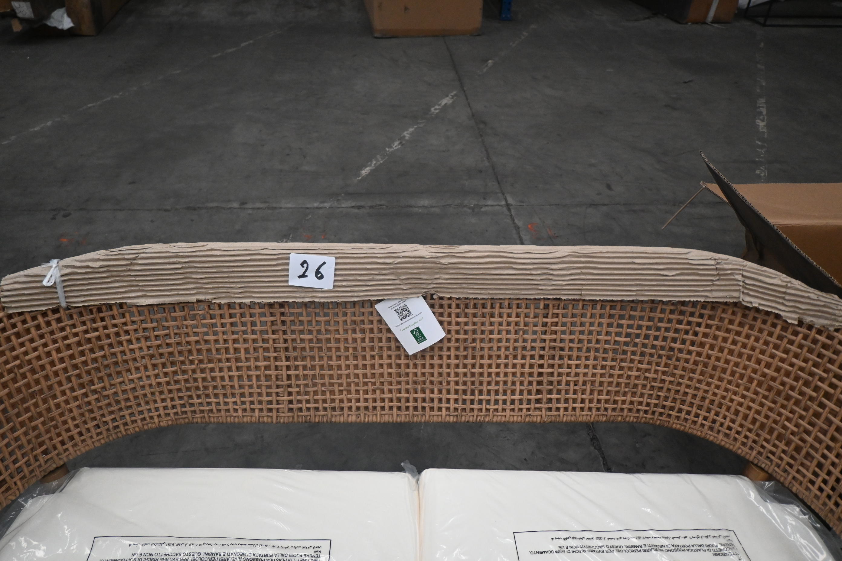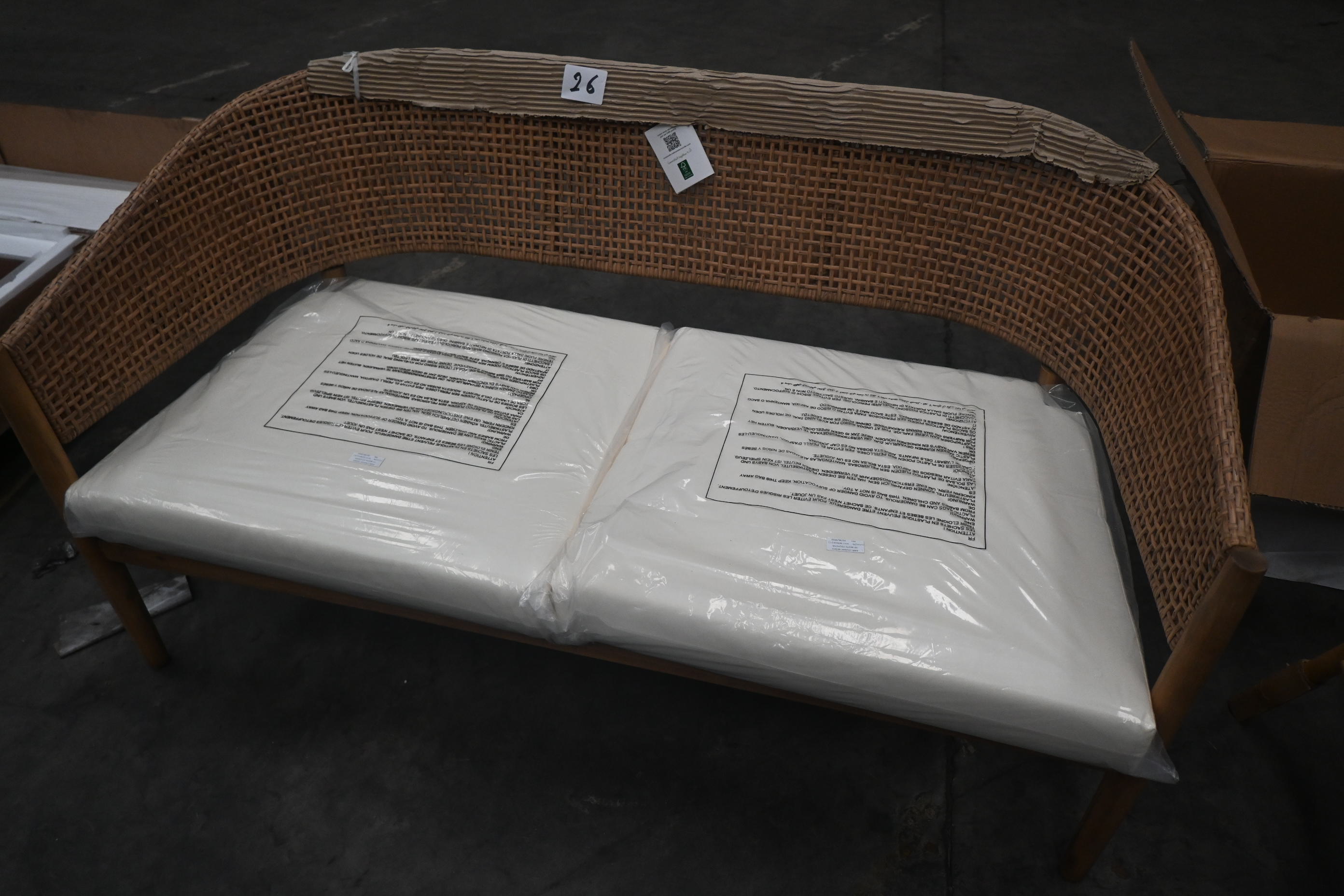 fauteuil 2 places en osier + coussins